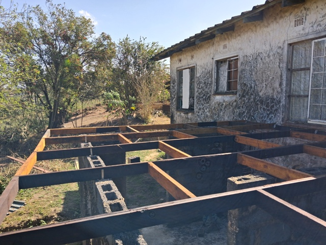 Work at the farm is progressing. Last week we managed to get some of the old painted roof sheets up and hope to finish this week. Then we will connect the gutter outlet to our rainwater tank , tackle the windows and pray for rain. We will be making our own windows out of polycarbonate roof sheet as well as making sieves for separating coarse stones from gravel and later for composting. Following that, renovating the floor and installing the bathroom.