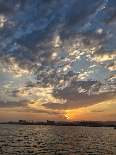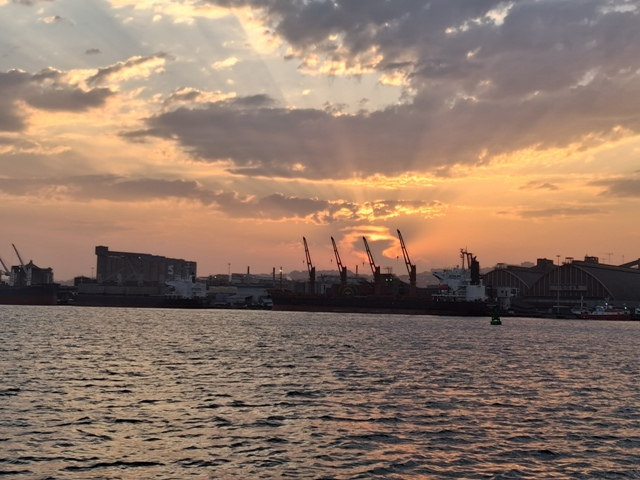After discovering that two of our band of happy wanderers had not set foot on a seafaring vessel nor observed a seaside sunset we found ourselves in Durban Harbour..