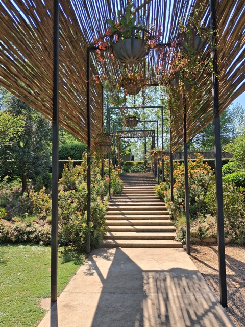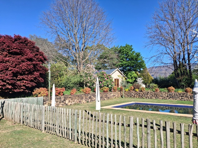 Delightful. In a word. We enjoyed an early morning coffee in the garden at Glen Garrie, surrounded by spectacular floral arrangements, large trees and the distant mountains catching the morning rays.